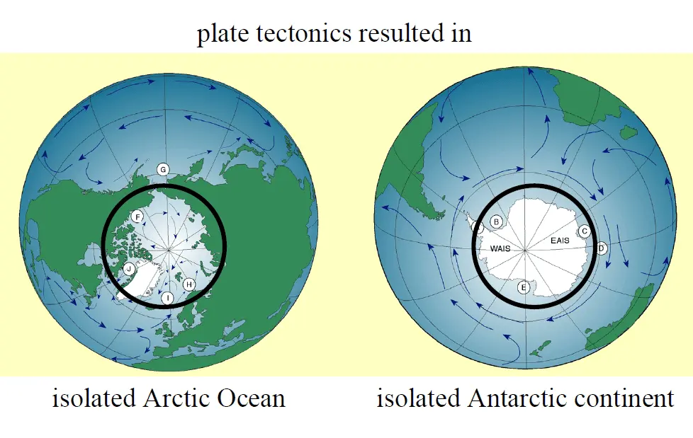 Most people think there have only been 4 glacial cycles or so but those are just the major ones of the past 400,000 years. Clearly the trend has been towards bigger and more severe glacial cycles. But they began happening ~2.7 million years ago. It coincided with the planet becoming susceptible to bipolar glaciation which is a new thing for the planet. The background conditions which led to it are isolated polar regions from the warmer marine waters, rise of panama isthmus, rise of the Himalayan mountains and atmospheric CO2 of 400 ppm. Conditions which still exist today. Extensive continental glaciation occurs at the south pole at ~600 ppm and 280 ppm at the north pole. The different thresholds of glaciation is because the south pole has a continent parked on top of it whereas the north pole has an ocean which is mostly isolated from the warmer marine currents. So it's harder for ice to form at the north pole than it is the south pole. Not surprisingly, it is the northern hemisphere glaciation which drives the climate of the earth.