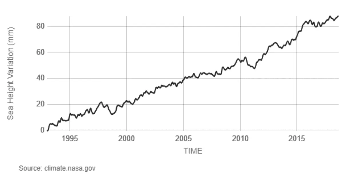 Probably the most visible affect of global warming. Rising sea level is leading to increased coastal flooding and enhanced storm surge. Before the century is out, over a hundred million people worldwide will have to relocate away from the coasts. Increased damage from storm surge and storms strengthened by warmer and warmer sea surface temperatures will cost humanity billions and billions of dollars annually.