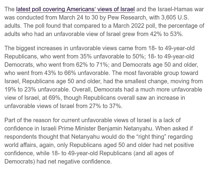 The conversation is largely academic at this point. Zionists have lost the American public. It matters little if Americans are conservative or liberal, large majorities in the Millennials and Gen Z are tired of this shit and soon will only vote for lawmakers that aren't puppets of the Zionazis.