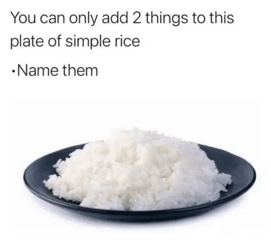 Just some butter and sautéed onions mixed with rice is awfully good.When I was a kid we lived in Louisiana and I attended 1st grade there.