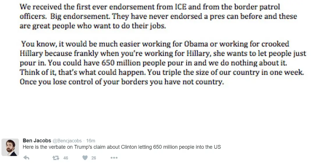 Sorry, he said 650 million. Now you come along and try to make his boo-boo all better. How sweet.It was 650 thousand. Everyone knew what Cankles wants in. Except Liberal Pukes.He says these crazy, demented things, and they cheer him wildly...and believe him!