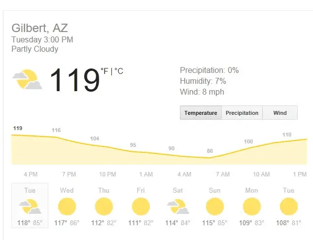 On Tuesday it hit 119 here in Phoenix....cooled off to 117 yesterday, and it was already 100 at 9am today.
