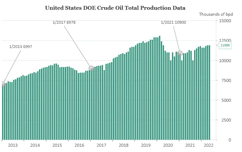He is? When did he get the authority to shutdown powerplants and drilling? And how could crude production be up under his presidency if that were true?
