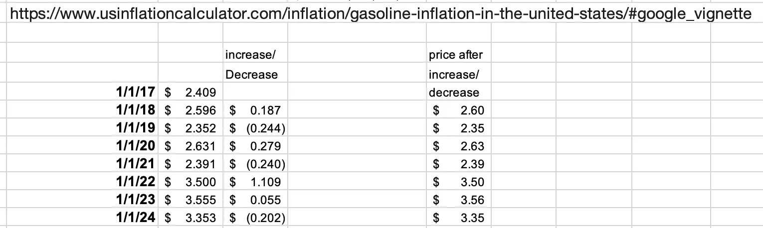 So even if prices went down, the majority of years saw an increase in cost of gasoline.