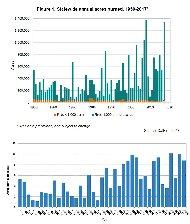 Edit: First chart is California only, the second is all the USA wildfires.