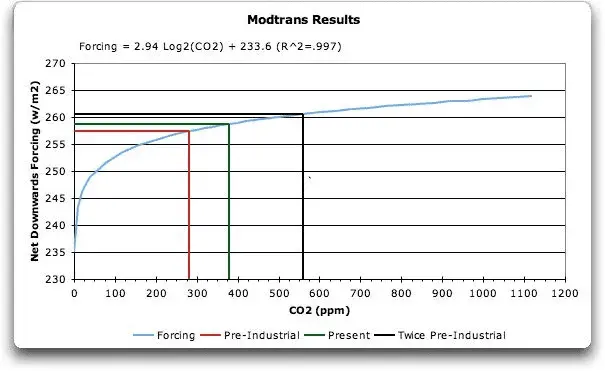 I have yet to see you and rock head realize that the change in warm forcing of additional CO2 since 1880 is very small and subject to a logarithmic decline of increasing warm forcing effect.