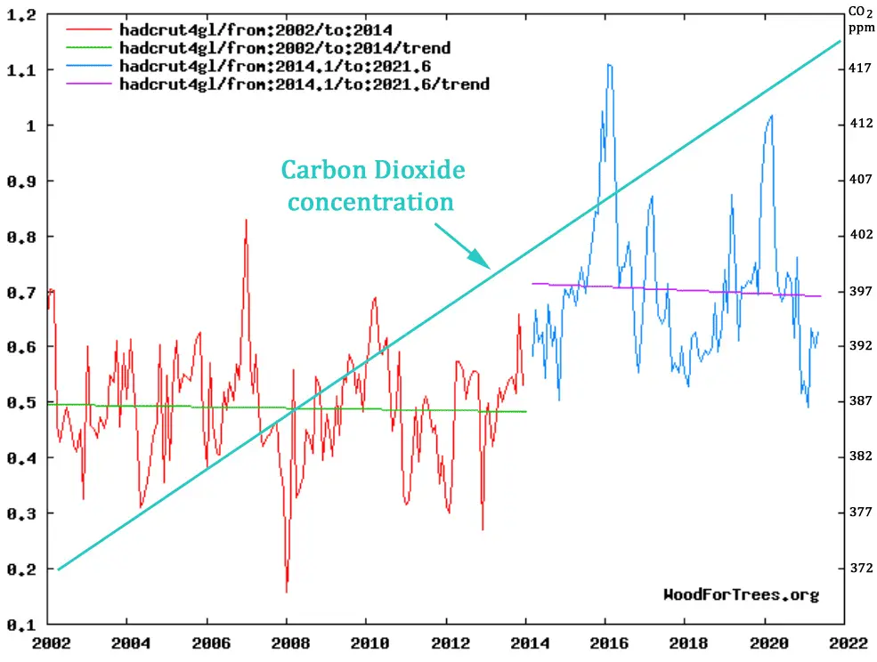 and this recent lack of CO2 to temperature relationship,