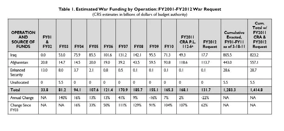 All of these costs started under Bush, but have become part of Obama's budget. All being blamed on Obama, but started under Bush and the Republicans. That's the disingenuous nature of politics. Obama can't just "walk away" from what the Republican started. They may be capable of that, but I don't think he is.