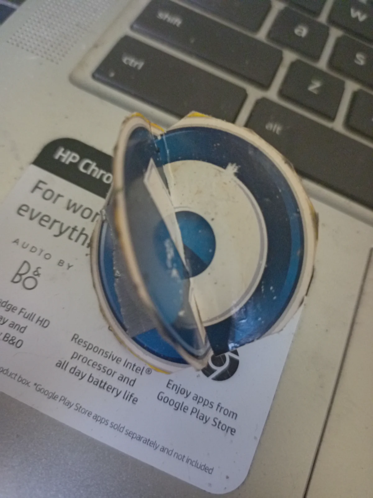 - The surrounding ring is irregular, possibly from a bottle cap or similar, not a perfect circle.