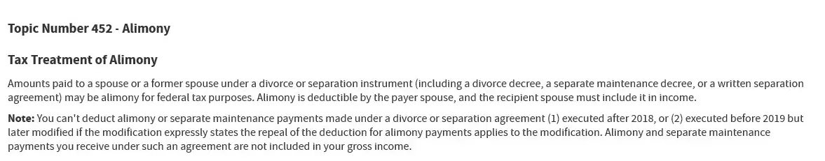 Topic No. 452 Alimony | Internal Revenue Service