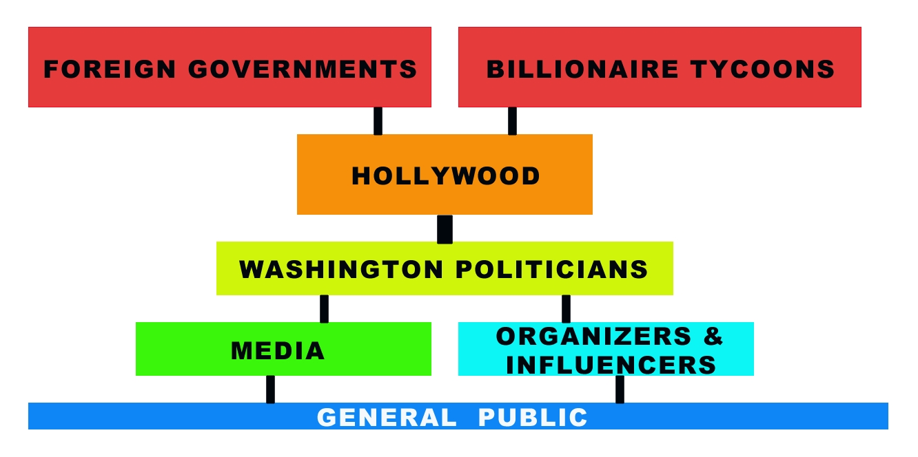 In turn, Hollywood now runs Washington. Money from China and Soros and others flows from foreign governments into the pockets of Hollywood. Did you really think all that wealth and beautiful homes came all just from making really bad movies? Hollywood writes the script, they set the stage, they produce the performance. Step one is to break America down by attacking the family unit, morality, and social values. By doing that, you weaken and soften up minds to be more susceptible to corruption. Stupid people are easy to fool, mislead and control.
