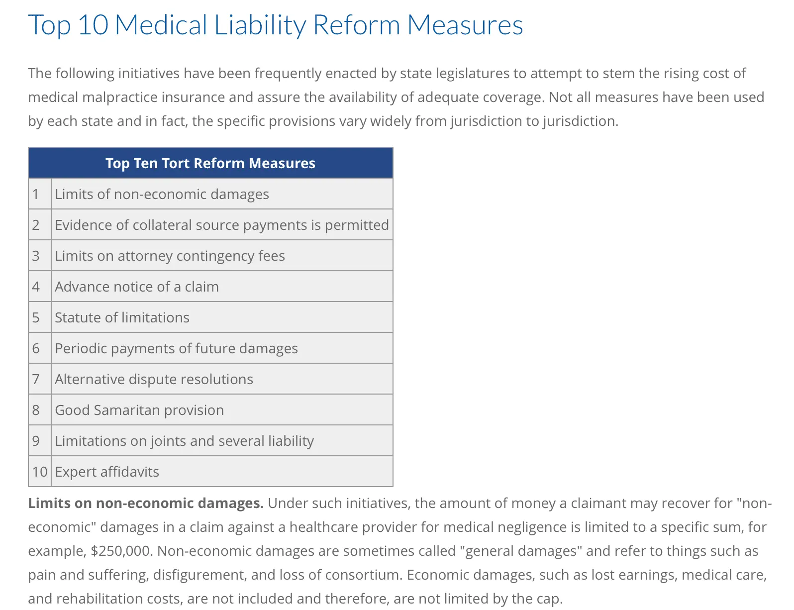 DO you understand what "Limits of non-economic damages" Mean? It means idiots like you that spill coffee on yourself in the doctor's office CAN't be paid millions in "pain and suffering"...!