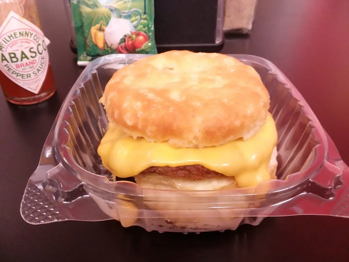 A lot of food can look good. This doesn't. Not a bit.This is God Food here in SW Wisconsin. I've gotten up every morning, drove three miles up the road, and had these for breakfast every morning for the last four years: A 4" sausage, egg, and cheese biscuit slathered with Tabasco sauce and ranch dressing, and washed down with a Monster energy drink. I call them "crack sammiches" because they're so addictive.