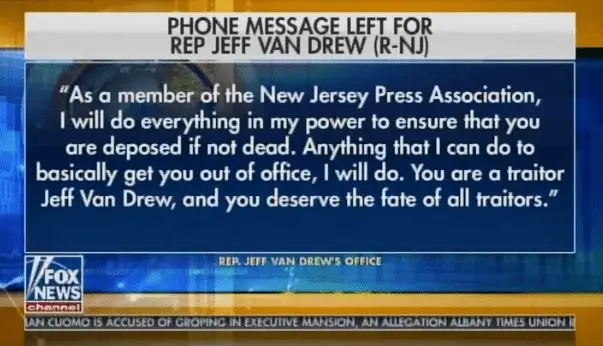 The caller also happens to be a far left reporter in New Jersey. John McCall of Ocean City has been threatening Van Drew for weeks. He wrote a column calling on the congressman to resign and accusing him of being “a faithful dog” to Donald Trump.