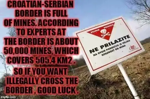 "Minefields in Croatia cover 505.8 square kilometres (195.3 square miles) of territory. The minefields (usually known as "mine suspected areas") are located in 10 counties and 77 cities and municipalities. These areas are thought to contain approximately 50,966 land mines, in addition to unexploded ordnance left over from the Croatian War of Independence. Land mines were used extensively during the war by all sides in the conflict; about 1.5 million were deployed. They were intended to strengthen defensive positions lacking sufficient weapons or manpower, but played a limited role in the fighting.