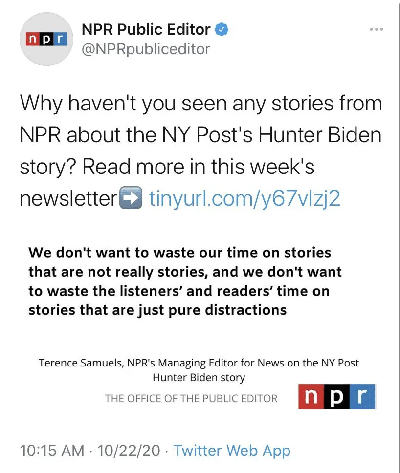 The propaganda media is actively working to cover up for hunter biden---I read an article yesterday on yahoo that said that Hunter was just having his taxes investigated and how it really wasn't anything---they completely ignored the chinese deals and the rape of little girls that he is being investigated for.Hunter Biden Caught On Tape Lamenting His Chinese Business Dealings