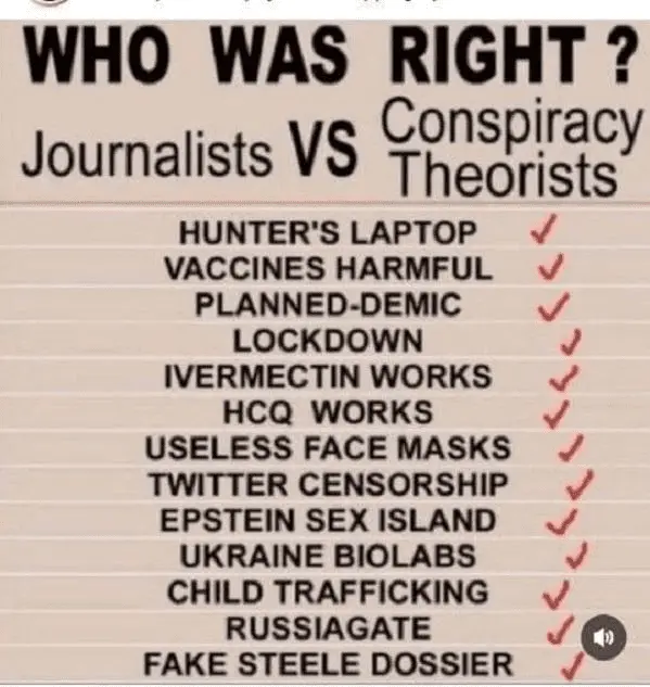 Most things that the media or democrat communists label as lies or conspiracy theories turn out to be real and true.