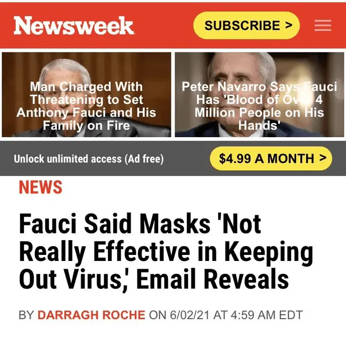 Newsweek is a rightwing source too? If Masks aren't effective and vaccines are then why does he want vaccinated people to wear masks?