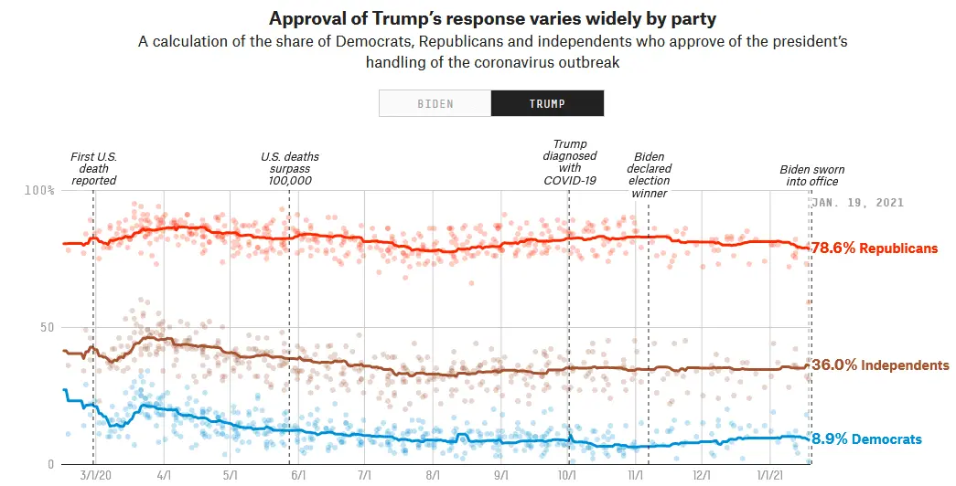 I explained how Trump didn’t do well but he didn’t fail because he got us warp speed and the PPP loans. Something those without financial acumen would not understand so for you it’s complicated. Biden said he would be much better. He isn’t. More deaths under him, high unemployment, inflation, border crisis and Afghanistan disaster and unlike Trump his personality isn’t polarizing.Of course they can’t be polled on covid at the same time. They’re being polled on how they handled the virus during their own respective terms.