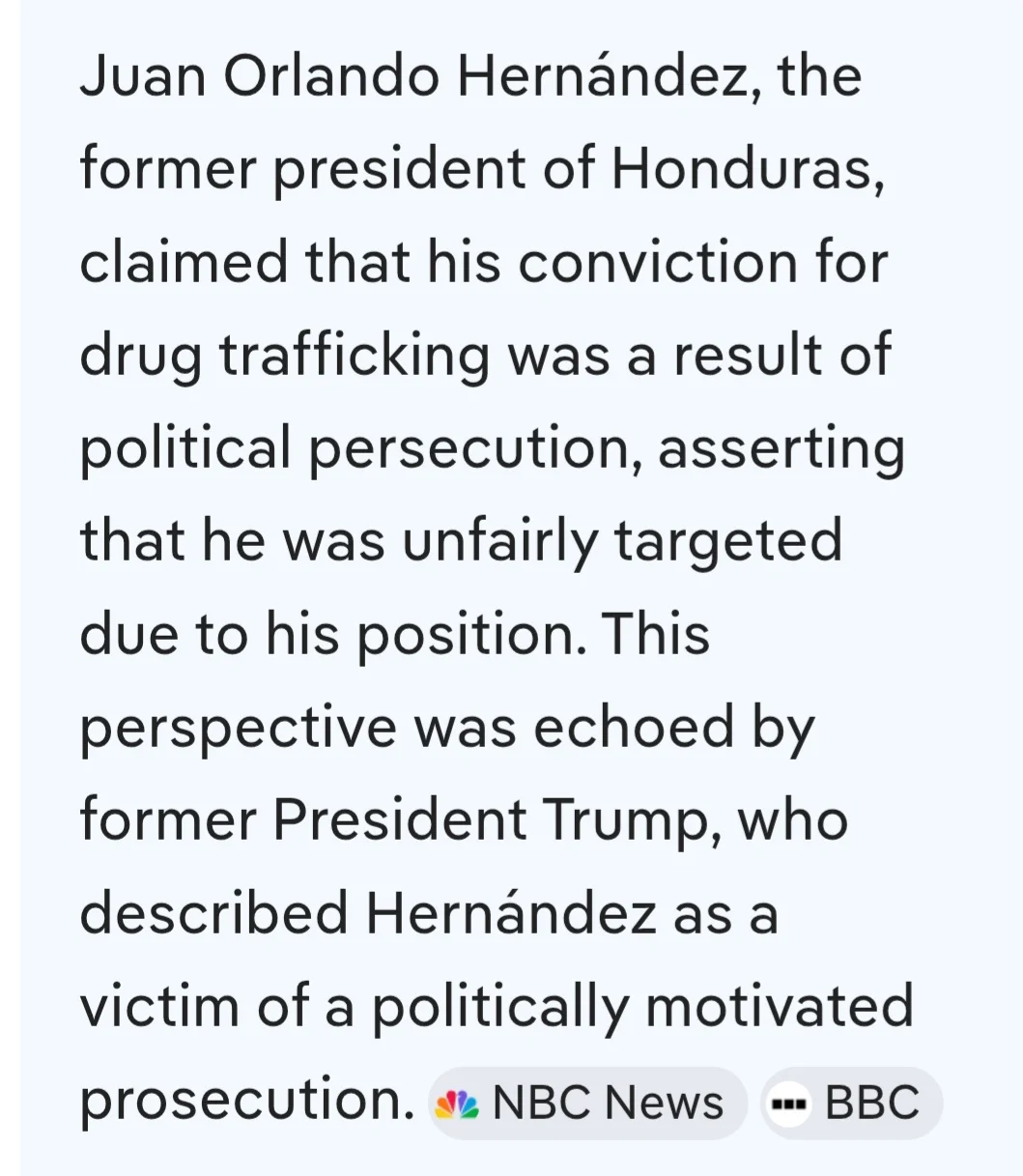 I assume that Hernandez was validly prosecuted for and convicted of the crimes for which he was indicted. Personally, I’d be happier if Hernandez had not gotten a pardon from President Trump.Just the fact that Biden (or whoever was in charge) sanctioned political persecution is good enough for me for a pardon on Hernandez.