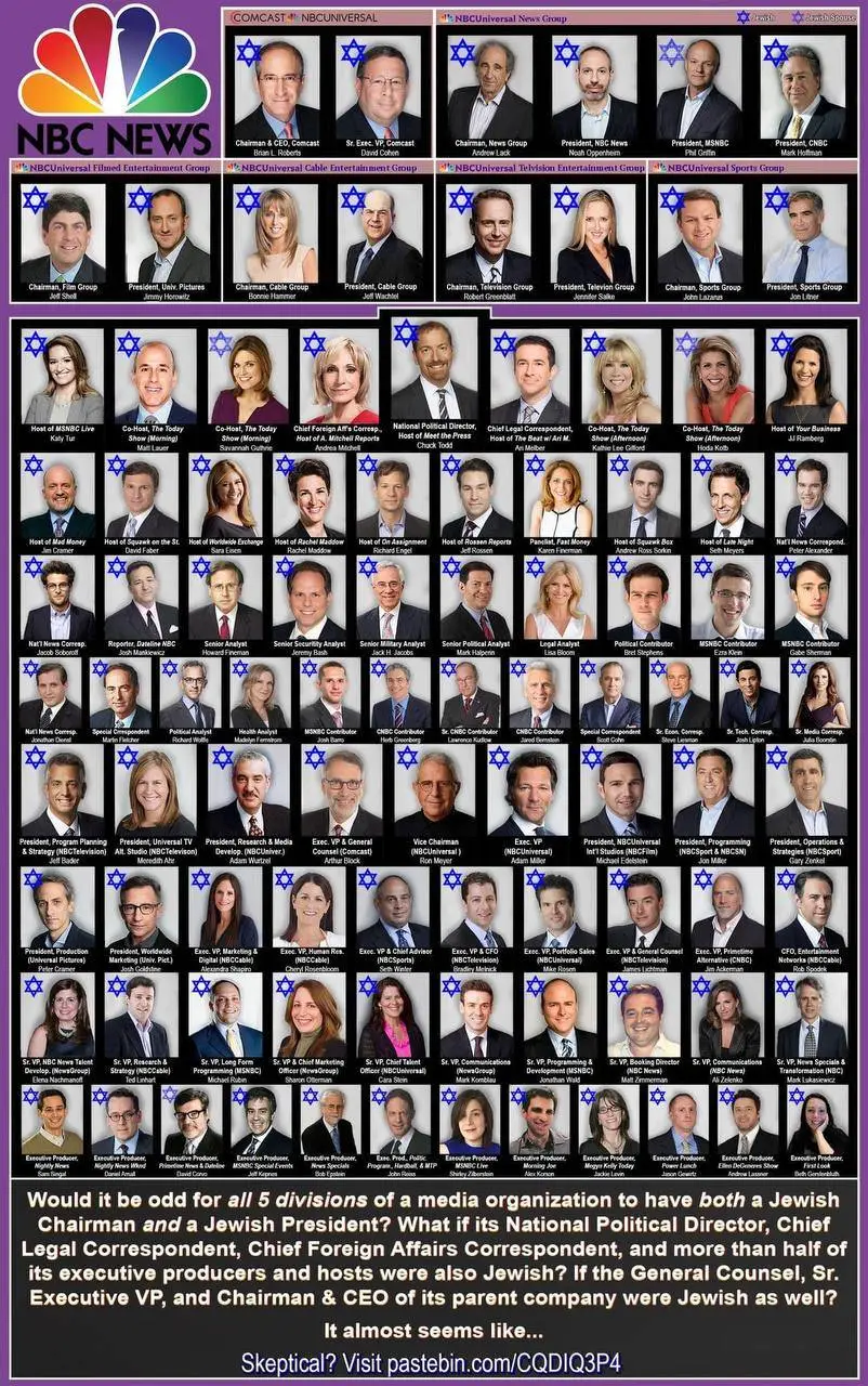 FOX NEWS...etc..EVERYTHING. You Jews, control everything, and you're EFING us, the Western world is EFed. You Jews are amazing, you've really exacted your vengeance with genius, machiavellian, surgical precision. One aspect of Jewish culture, here in the US, that I respect and like, is the Jewish emphasis on education. That has served you well, as you can see from the above images. The WASPS, the goyim, Joe the plumber, doesn't have a snowball's chance in hell of figuring this out. You Jews eat us for breakfast, we're toast. Most goyim are asleep and don't have a clue. We're in the "Jew-matrix".