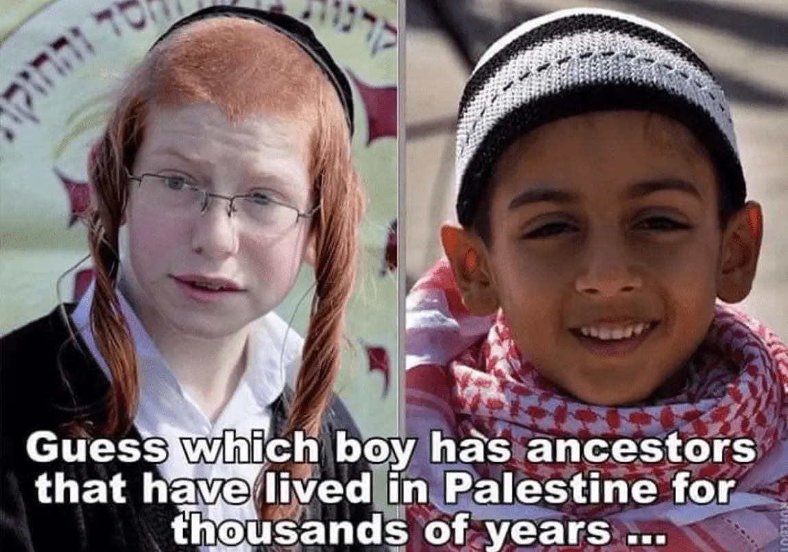 FailZero, you're ridiculous. First of all, if you were to give 80% of Jewry a DNA test, it would come back with little or no Middle Eastern genetics. The Ashkenazi Jews from Eastern Europe, are for the most part, if not completely Slavic, Cacasoids, not Semites. So it's nonsensical for you to appeal to the Hebrew Bible or what happened thousands of years ago, as if that somehow justifies the expropriation of lands from the people who have been living there for centuries. For all you know, these Palestinians are the original indigenous inhabitants of the Holy Land. The fact that they converted to Christianity and Islam, doesn't invalidate their claim to the land that they've been living on forever.