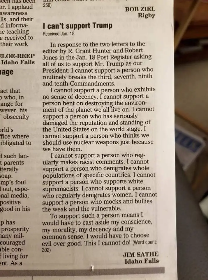 I can't support Trump