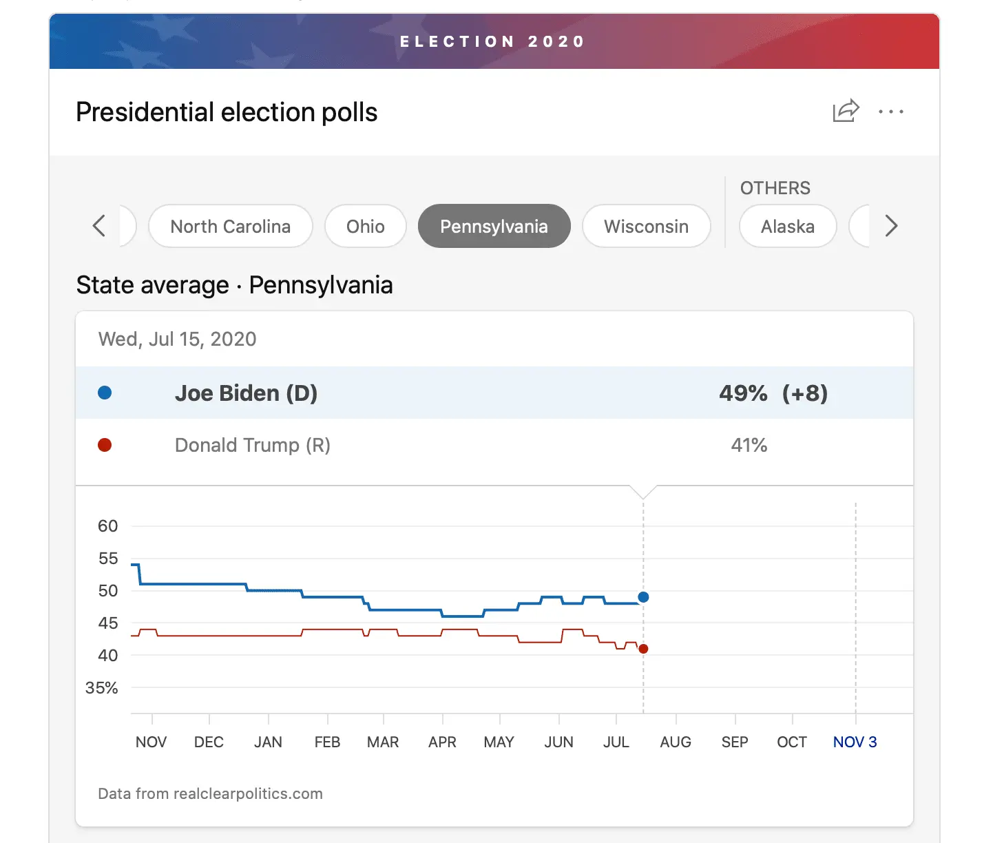 Even in landslide Republican wins, like 1980 & 1984, you never see the Republican up by 15 points ahead of an election. Reagan won 49 states and couldn't match the margins Clinton was enjoying in 2016 or Biden today. In fact, some had Reagan losing.