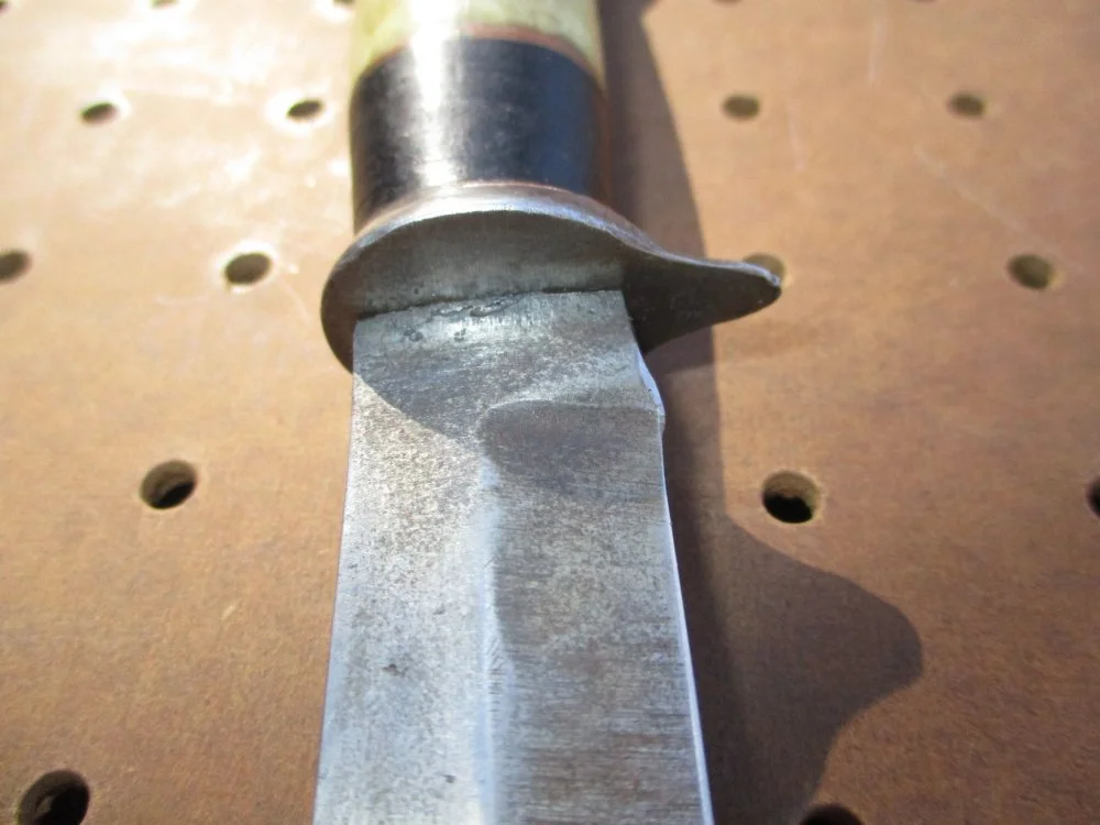 Unfortunately a little less than a quarter inch was broken off at the tip when I found it. I took it to a guy who has a sharpening shop in town and he reground the tip for me. He only charged $5 for sharpening it, and an extra two dollars for regrinding the tip. The knife was probably made anywhere from the 1930's to the 1950's. I'm probably going to keep this one because I like the weight of it.