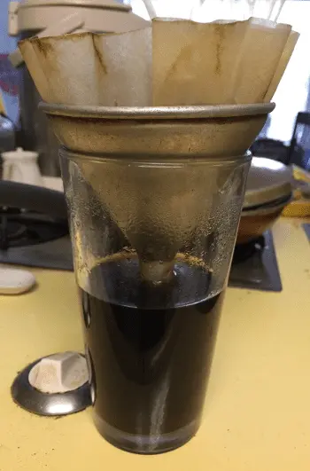 You just take the metal cone and ad a paper filter set it in the mouth of your large mug and pour the hot water over it.