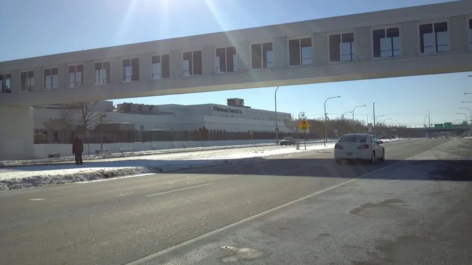 Picture I stopped and took of a homeless man walking in front of a JP Morgan Chase headquarters in 2014.