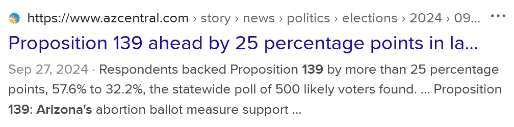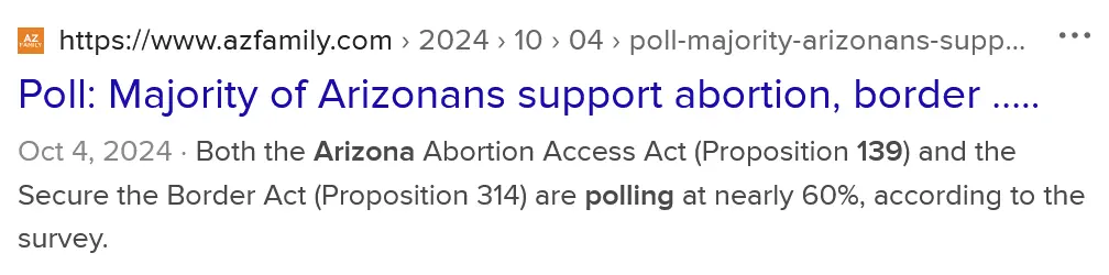 As I have posted in other threads, the blitz of thousands of Kamala ads on fighting "Arizona's abortion ban" is pushing a TOTAL LIE. The current Arizona law imposes a 15 week limit on fetal age on abortions. Their oh so noble PROP 139 removes ALL RESTRICTIONS on fetal age. Is that what women want to call "Reproductive Rights"? Are you really that ghoulish? Or just grossly misinformed?
