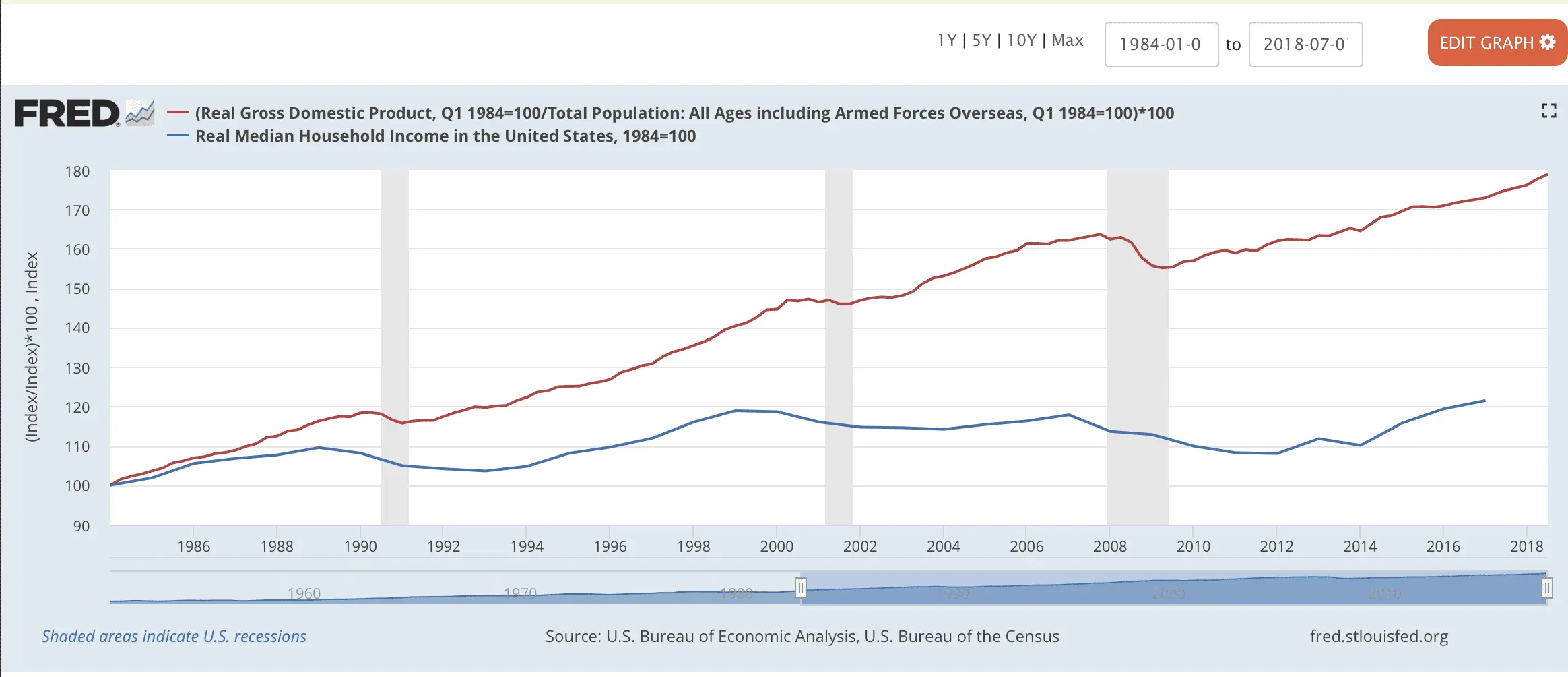 Nobody is claiming that the trend which started under Reagan did not continue under ObamaI have no desire to discuss the economy of 1929 to today..it is irrelevantRight and the middle and working class have been shrinking.