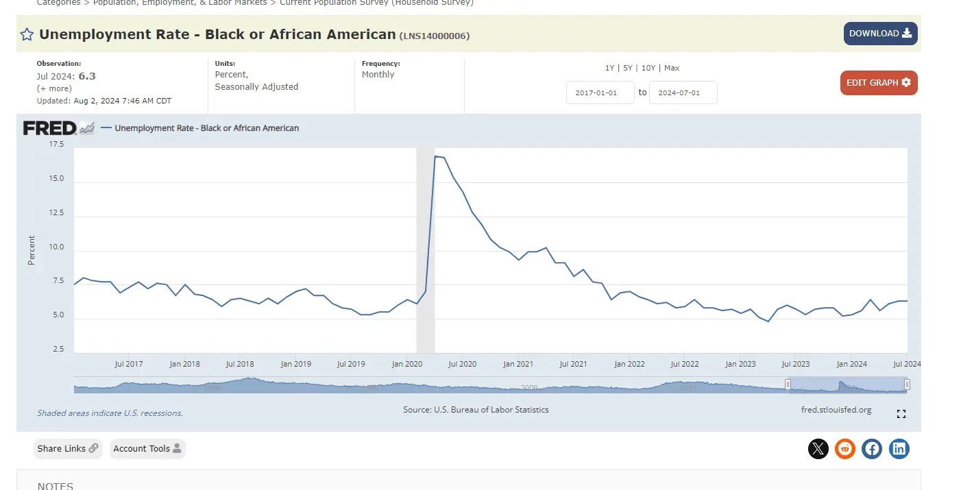 So do you. It fell from 8 to 5 under Trump, according to YOUR chart. Pandemic fucked everything up. Democrats shut the country down killing jobs, then blamed Trump. In Jan 2020, pre scamdemic, black unemployment was at its lowest in 50 years.