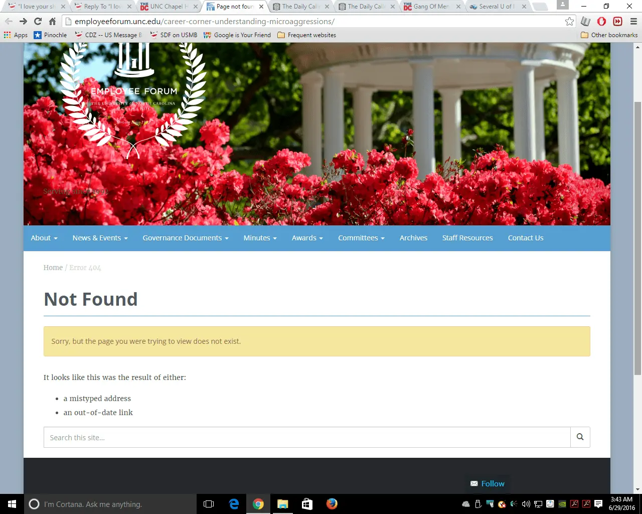 (This is DC's full link--http://api.viglink.com/api/click?format=go&jsonp=vglnk_146718647596816&key=e7609c039c08d3ae00aebd97e6f0bffd&libId=iq0jwtbg010110e3000DL47z6crjy&loc=http%3A%2F%2Fdailycaller.com%2F2016%2F06%2F25%2Funiversity-of-north-carolina-christmas-vacation-is-a-microagression-now%2F%23ixzz4CwoZn5fM&v=1&out=http%3A%2F%2Femployeeforum.unc.edu%2Fcareer-corner-understanding-microaggressions%2F&ref=http%3A%2F%2Fwww.usmessageboard.com%2Fthreads%2Fi-love-your-shoes-are-microagressions-golf-outings-and-the-words-boyfriend-also.506441%2F&title=UNC%20Chapel%20Hill%3A%20CHRISTMAS%20VACATION%20Is%20Microagression%20Now%20%7C%20The%20Daily%20Caller&txt=entitled%20%E2%80%9CCareer%20corner%3A%20Understanding%20microaggressions%E2%80%9D)