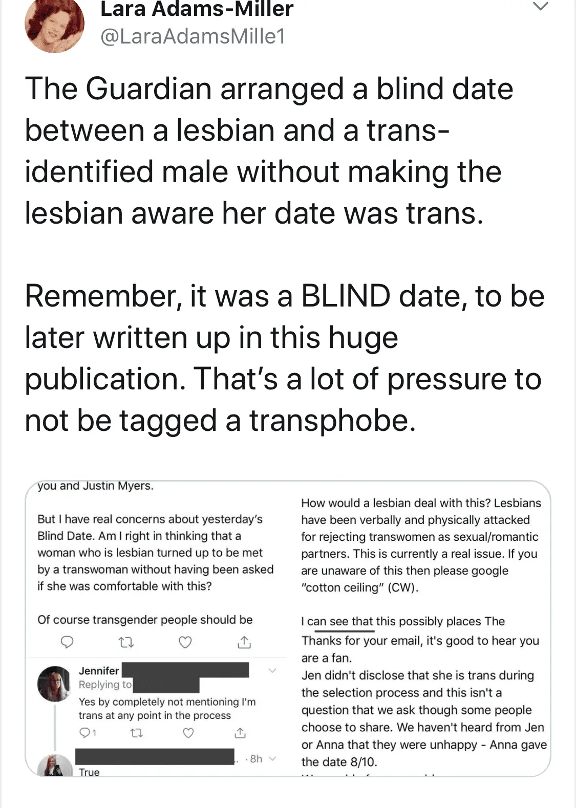 Did you know that going on a date with someone doesn’t mean your entitled to know about what’s in their pants? You aren’t having sex, you aren’t being tricked, you’re just meeting up and connecting with someone. Stop boiling trans people and relationships down to sex.