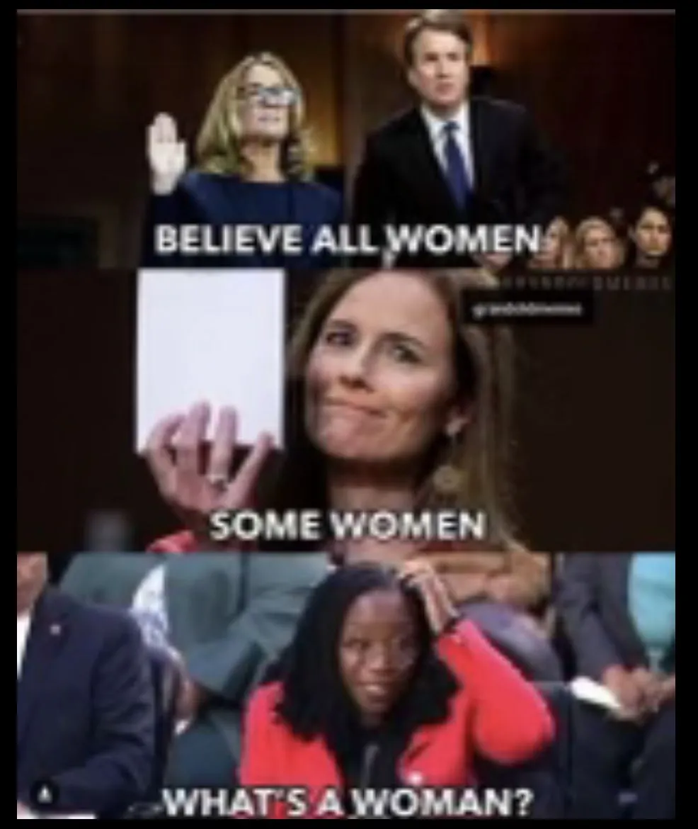 She said that she was unable to define the term "woman" because she is not a biologist. She is the current flavor of the week for liberal Democrats, so now the official stance of the liberal Democrats is that it is biologists who are the experts to be consulted on who is and is not a woman.