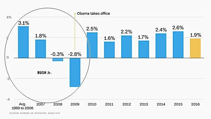Your cute little word salad here doesnt change a thing. What I said in Post # 2985 and before, that stands 100% intact. Obama ended his reign with 2 years of awful declining GDPs (aka recessions). Trump brought those low GDPs back up again.