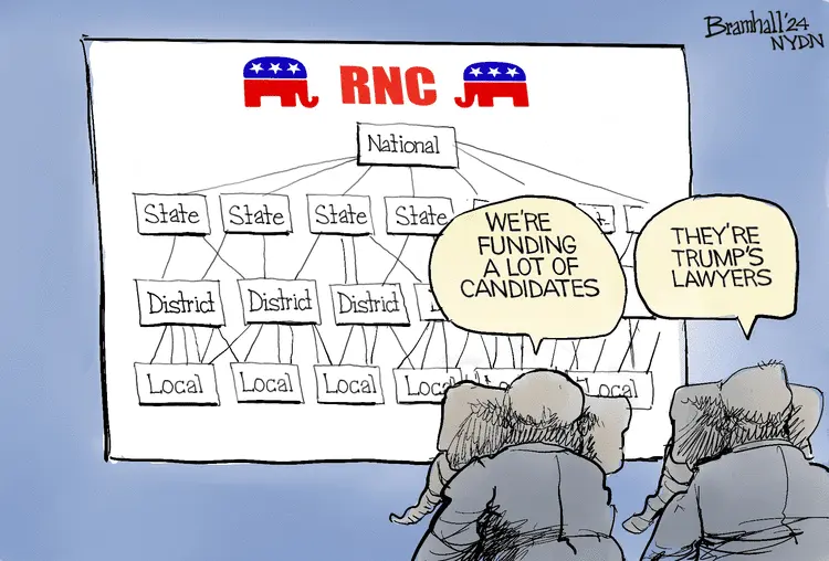 The Republican Party is dead or in its death throes. It has become a vehicle for one man to use and abuse. Its remaining members, especially what's left of the old guard, suffer from a form of battered woman's syndrome.
