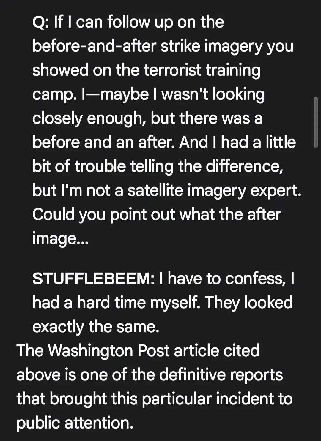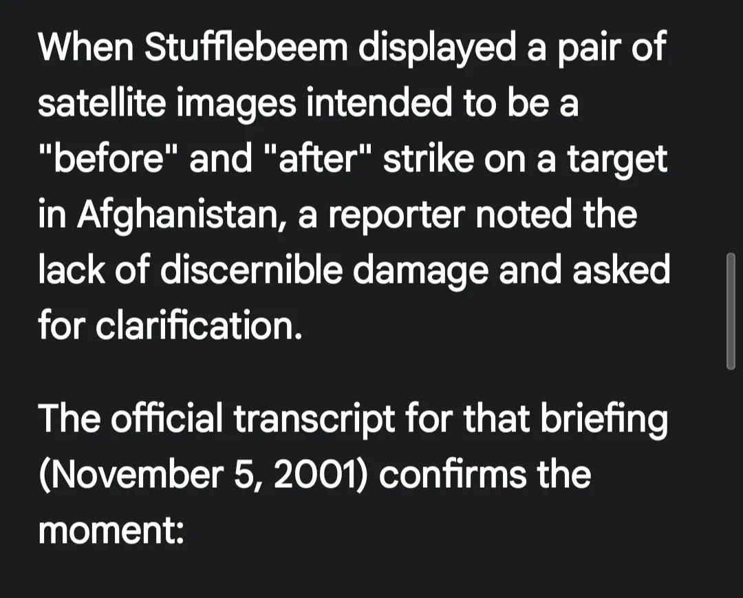 I remember back in 2001 a briefing about the Afghanistan war where the briefer could tell the difference between the before and after bombing images. I was making a joke about going to war with Venezuela and wanted to add the reference.