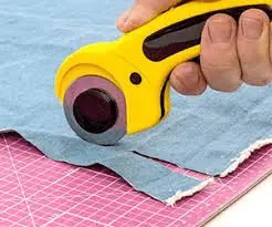 A quilter's rotary cutter is a precision cutter that has a 45 mm roynd blade that is surgical sharp and looks like a tiny vinyl record except it is high carbon steel as sharp as a surgeon's scalpel. You use it to cut through multiple layers of quilters cotton that speeds the boredom og cutting 3000 square, rectangular, or 60 degree star parallelograms after cutting long strips at 45 degree cross cuts to make star quilts or postage stamp quilts. If you use a 28 mm round blade you can even make a drunkards path or center circle quilts that require a good sewing machine and a few trade secrets for sewing curves together.