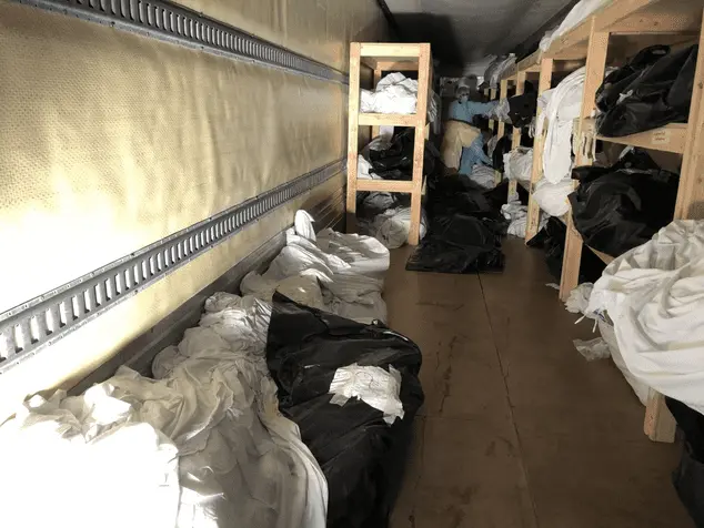 Instead of 40 to 44 bodies in the trailer, there were close to a hundred, he said. He spent two days moving and stacking corpses and inserting shelving to create more space. Frampton also asked for the name of the hospital and his employer to be withheld because he doesn’t want them to be singled out for criticism.