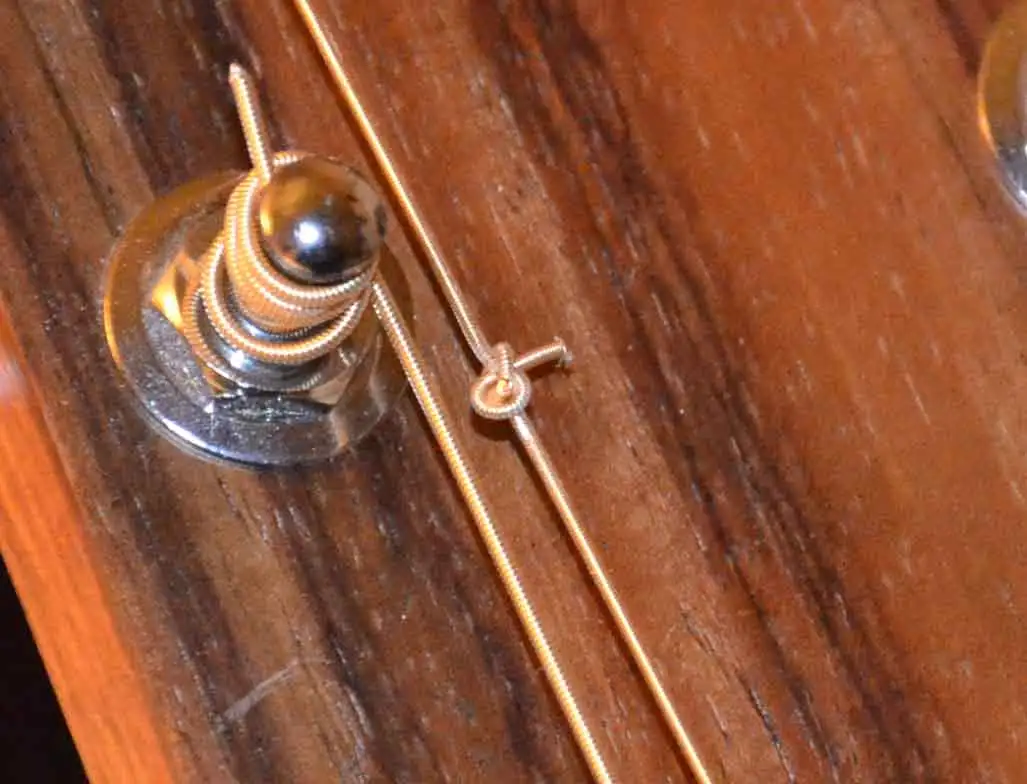 And I cut the D string too short because I screwed up and mistakenly measured it to the E string peg! Dammit! I don't have anymore strings and I don't want to use the old one. So I thought, what the hell? Look!