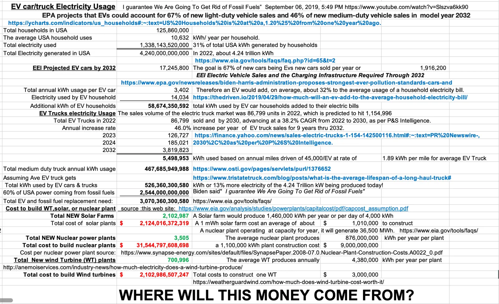At that rate to replace the 3,070,360,300,580 kWh would require 3,505 power plants at average cost of $9,000,000,000