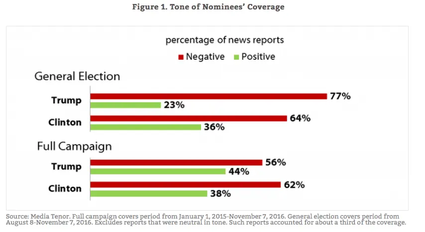 As this Harvard study shows, Trump received MORE negative tone stories and LESS positive tone
