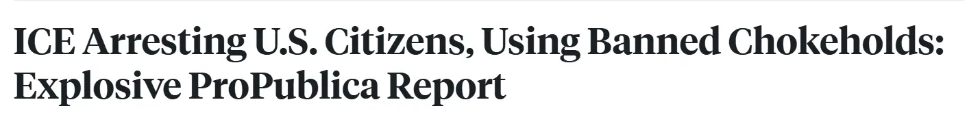 A new investigation by ProPublica finds over 40 cases of immigration agents using potentially fatal chokeholds and other moves that can cut off breathing. “These arrests are playing out around the country, and often in full view of cameras and witnesses,” says ProPublica reporter Nicole Foy. She also reports that at least 170 U.S. citizens have been arrested by immigration agents.