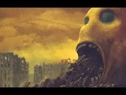 That is a Zdzisław Beksiński painting. It looks like a few good friends of mine, the ḥayyōṯ who took me on a guided tour across the seen and unseen universe in the Merkabah.