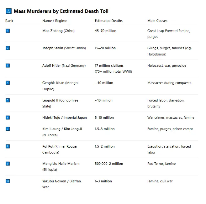 You’re an idiot. Bibi has only mass murdered those that attack his nation. Maybe you retards should learn the lesson and stop doing that.... because they are the 3 and only 3 humans who have mass murdered more than Bibi....