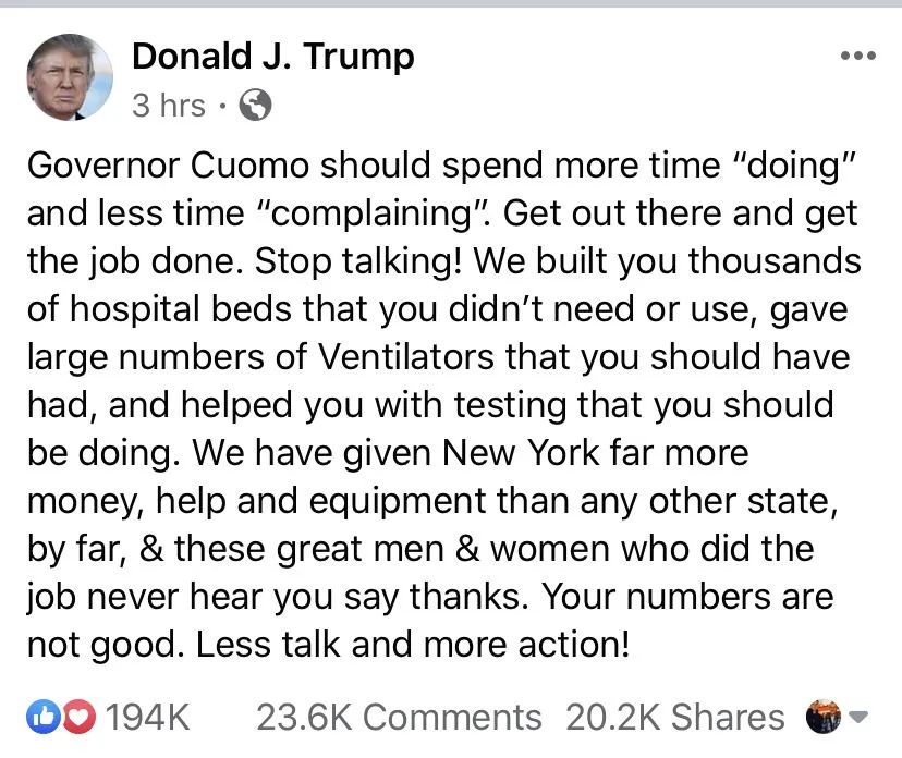 Cuomo and Trump spar after NY governor says don’t 'pass the buck without passing the bucks'