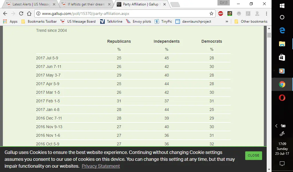As such, not only are you against the 45% who are Independents, but also against the 25% who are Republicans making your 28% Democrats attacking 70% of Americans.